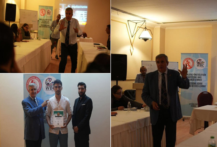 Prensa/CMB/Jabeando/07-07-2022.- En Turquía, Estambul, los días 27 y 28 de junio, se celebró un gran seminario de 2 días impartido por el oficial de ring del CMB, Guido Cavalleri, para los nuevos jueces y réferis de la comisión turca de boxeo profesional. El evento fue organizado por el presidente de su comisión Suat Karlidag. El primer día estuvo completamente dedicado a la formación de los jueces. El segundo día se cubrió el comportamiento del réferi dentro y fuera del ring. Guido Cavalleri mostró el más alto nivel de experiencia al presentar el material y compartir su experiencia. También en el seminario presenté las implementaciones del CMB que hicieron que el boxeo profesional creciera. Los futuros supervisores se familiarizaron con sus responsabilidades durante las peleas en el seminario.