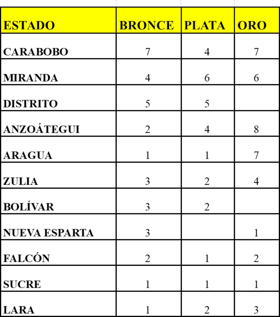 Entre tanto, los medallistas por el estado Carabobo fueron los siguientes: