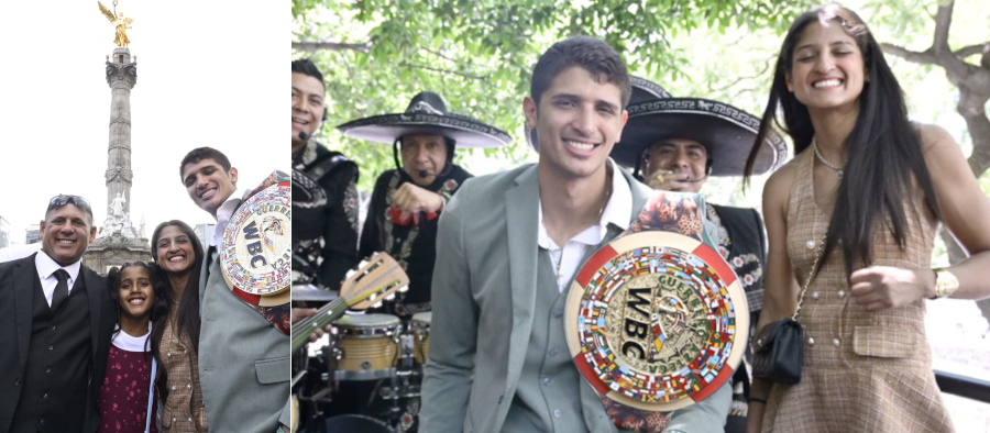 Al cierre de la ceremonia, llegó un mariachi y disfrutamos de una celebración que nos hizo volver a casa muy contentos. Los Fundora se subieron al Turibus con el mariachi, amigos y la prensa para recorrer nuestra gran Ciudad de México, mostrando con orgullo sus cinturones. La parada final fue para disfrutar de las delicias de la comida mexicana en el restaurante Cuchilleros, donde los escamoles, los tacos de filete empanizado y el cochinillo asado cautivaron a los asistentes. Otra gran virtud de esta increíble familia es la música, y los tres hijos, junto con su padre, lo dieron todo en el karaoke.