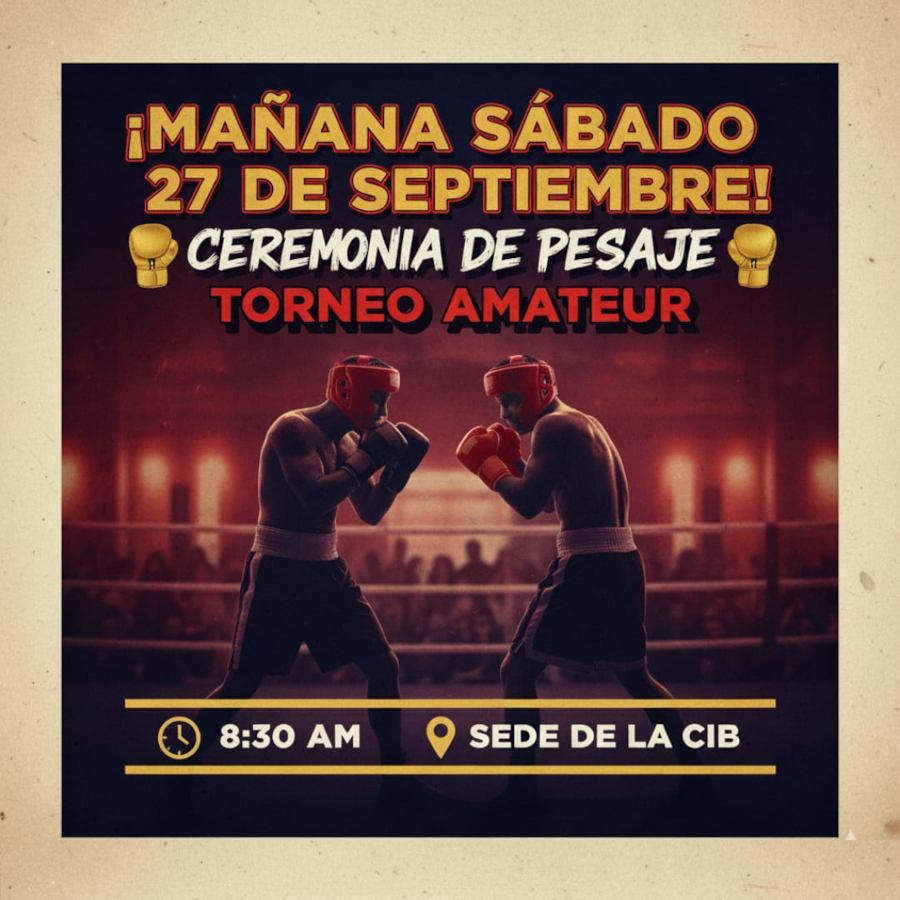 Prensa/Jabeando/26-09-2025.- Este sábado 27 de septiembre de 2025 será el punto de partida para el Torneo de Boxeo Amateur organizado por la Confederación Internacional de Boxeo (CIB). La jornada iniciará con la ceremonia de pesaje oficial de los atletas.