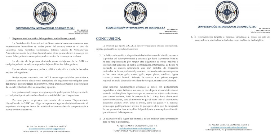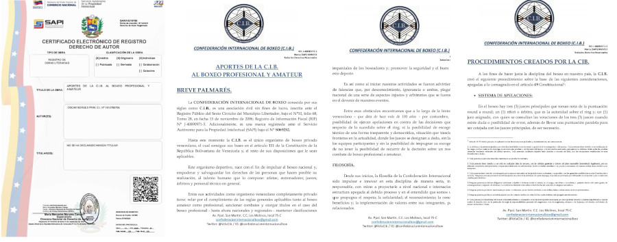 Prensa/Jabeando/24-10-2025.- La Confederación Internacional de Boxeo (CIB) ha dado un paso fundamental para la protección de sus innovaciones y procedimientos en el ámbito del boxeo profesional y amateur. La organización informa a sus seguidores que ha materializado con éxito el registro de derechos de autor ante el Registro Autónomo de Propiedad Intelectual (SAPI) de Venezuela, bajo la cuenta @sapi_ve.