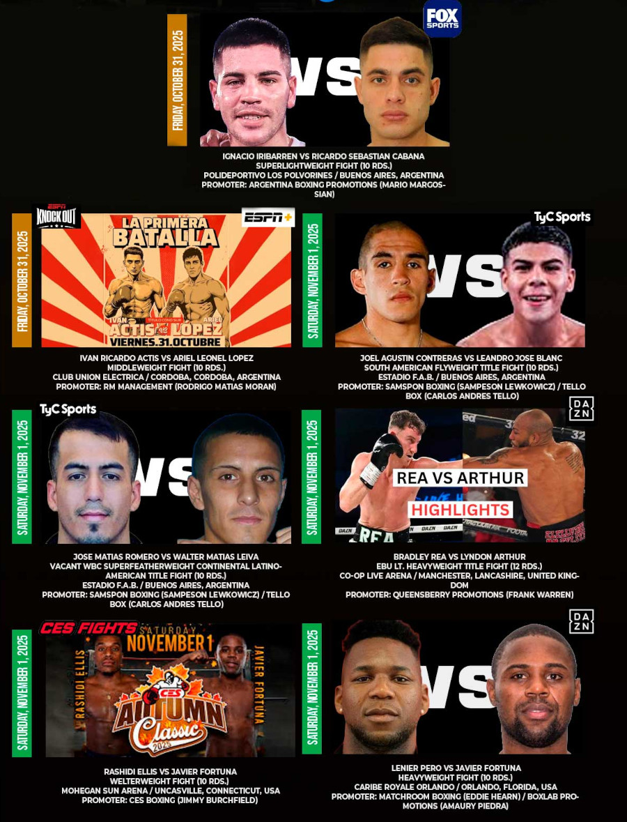 Prensa/CMB/Jabeando/01-11-2025.-El Consejo Mundial de Boxeo te presenta la cartelera televisiva, en la que te indica la variedad de boxeo mundial que podrás observar por distintos medios televisivos.