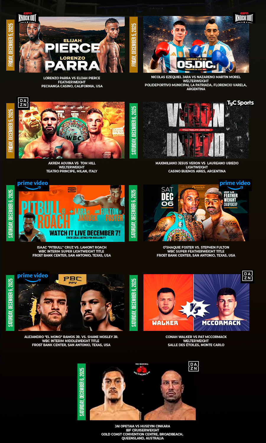 Prensa/CMB/Jabeando/04-12-2025.- El Consejo Mundial de Boxeo te presenta el Calendario de Peleas del Fin de Semana a nivel mundial, para que puedas saber dónde y cuándo se llevarán a cabo tus combates favoritos.